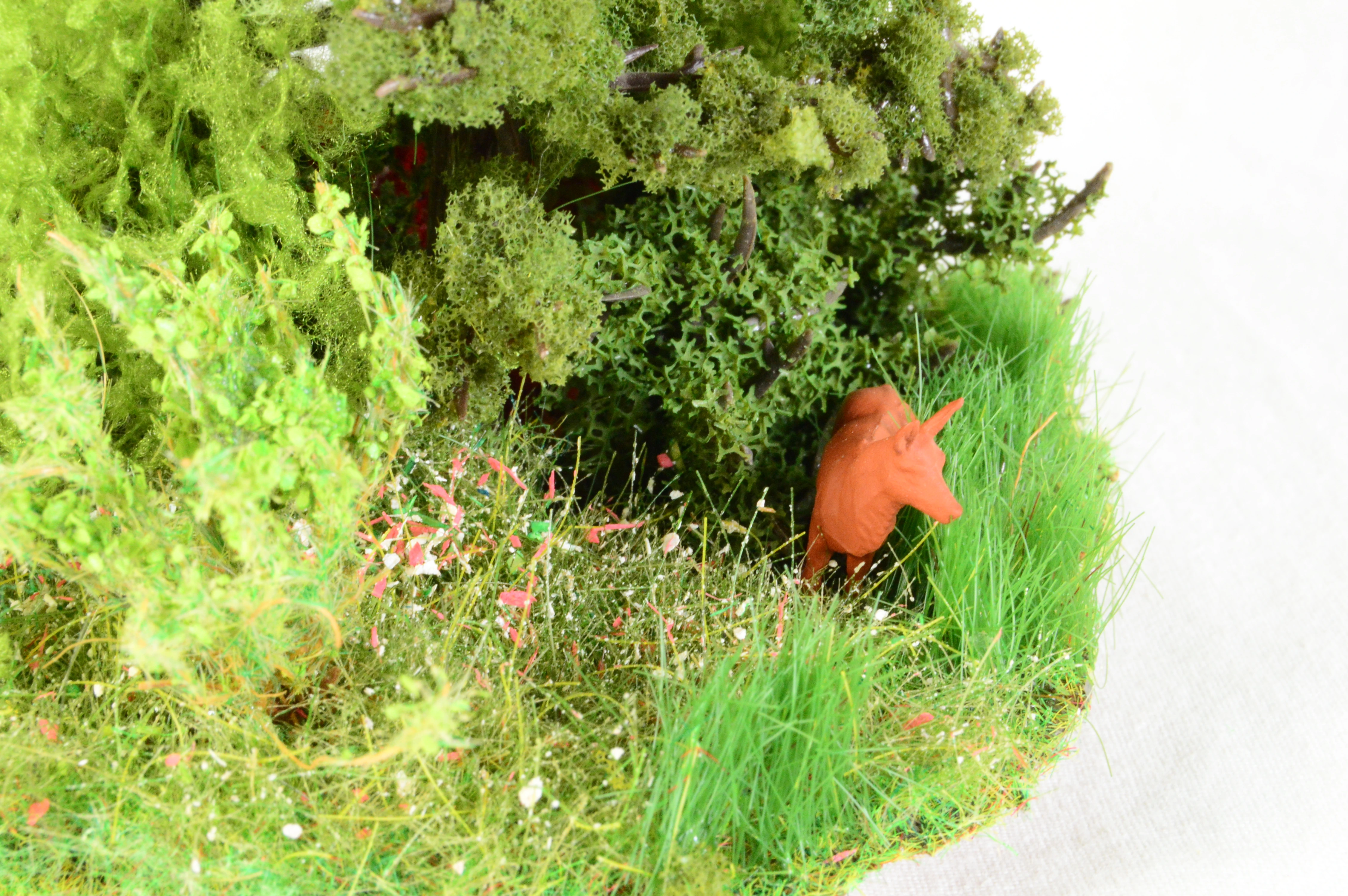 Montiert auf einer Korkscheibe / Größe Durchmesser ca.10 cm Gesamthöhe 12 cm Die Ränder sind abgesenkt, so dass das Diorama leicht in eine bestehende Landschaft eingesetzt werden kann.