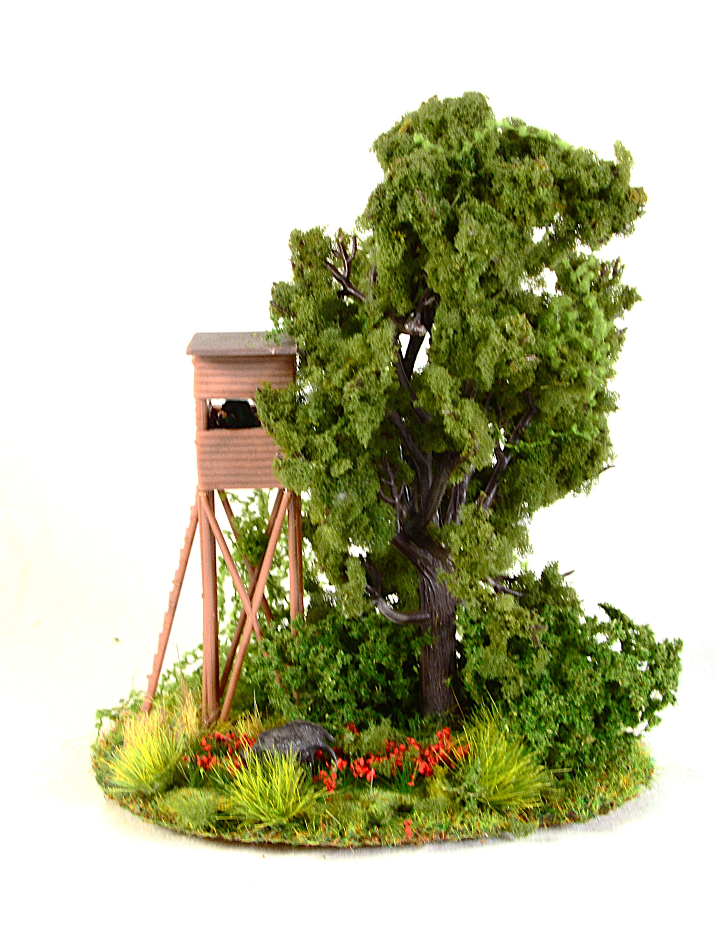 Montiert auf einer Korkscheibe / Größe Durchmesser ca.10 cm Gesamthöhe 12 cm Die Ränder sind abgesenkt, so dass das Diorama leicht in eine bestehende Landschaft eingesetzt werden kann.